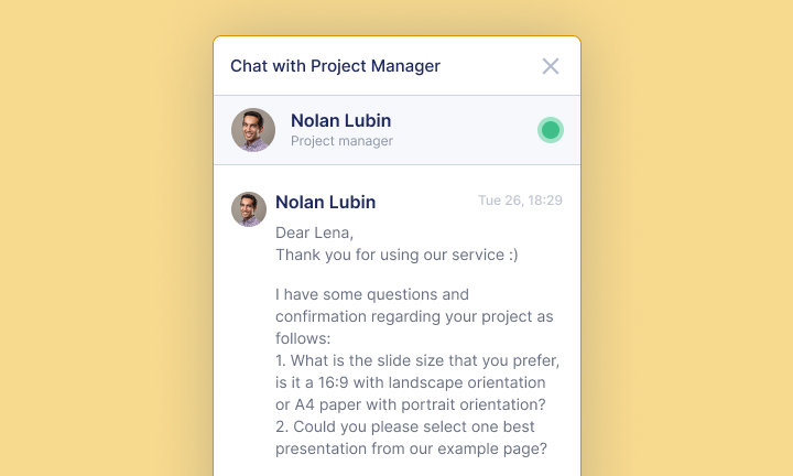Within your selected turnaround-time, you’ll be notified your first presentation draft is ready.